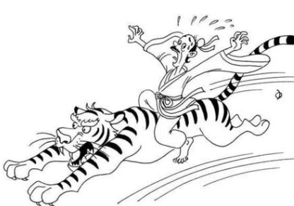 这就是成语骑虎难下的故事,故事中说道,像骑在猛兽身上就是成语的原意,指的是骑在老虎身上很难下来。比喻做事中途遇到困难,但迫于形势不能停止,进退两难。
