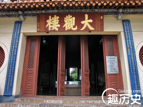 这是由清代名士孙髯翁为昆明大观楼所题写的长联,垂挂于大观楼临水一面的门柱两侧,号称“古今第一长联”。孙髯,字髯翁,号颐庵,昆明人。生于清康熙年间,卒于乾隆年间,享年80余岁。自幼聪颖,才气超群,自号“万树梅花一布衣”,晚年又自号“咒蛟老人”。在文禁森严的雍乾之际,把感慨融铸于一百八十字大观楼长联中,一时轰动诗坛,是我国楹联文库中的一颗明珠。上联写滇池风物,似一篇滇池游记;下联记云南历史,似一篇读史随笔。寓情于景,情景交隔,气势磅礴,浑然一体,堪称千古佳作。