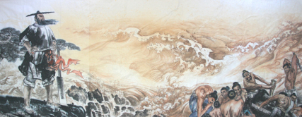 在他的带动下,治水进展神速,大山终于豁然屏开,形成两壁对峙之势,洪水由此一泻千里,向下游流去,江河从此畅通。
