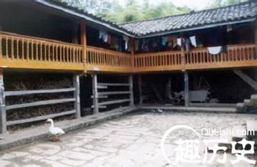 厨房大都在左间,地中间横砌土台锅灶,上面是两口大铁锅。靠后墙是炊具、餐具,前面是石碓,平时捣猪饲料,节日捣粑粑,用石碓捣的辣椒面也格外好吃。右间大都是家长的居室,只放木床。两侧厢房与主房分离,木板梯上下。一侧下层是猪圈、牛栏,上边存干草;另一侧下面堆放粮食、烧柴、摩托车,上层是未婚子女的卧室,有廊道、腰栏。院落小的,在主房对面设牛栏,砌土坯墙围成独立的合院。