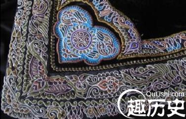 最后用结线绣和螺线绣将图案骨架填满,谓之“补花”,再缀上闪亮发光的“金线”,于是便构成一幅结构完整、形象生动、色彩鲜明、缜密精致、豪华富贵的美丽画面。黑、红、黄、白几色对比,形成层次分明的视觉效果。背孩带不仅美观大方,而且结实耐用,是母亲给女儿准备的最好嫁妆。一件马尾绣衣服往往要耗费一个妇女数年甚至十多年时间,因此它也是衡量姑娘女红功底的标准。
