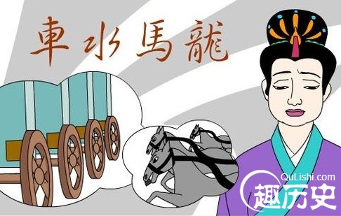 车水马龙的典故:东汉名将马援的小女儿马氏,由于父母早亡,年纪很小时就操办家中的事情,把家务料理得井然有序,亲朋们都称赞她是个能干的人。