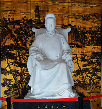 崔致远,字孤云,新罗末期人,是朝鲜国历史上第一位留下了个人文集的大学者、诗人,一向被朝鲜和韩国学术界尊奉为韩国汉文学的开山鼻祖,有“东国儒宗”、“东国文学之祖”的称誉。他12岁时离家来到长安求学,在中国一共呆了16年时间,前面的七、八年是在长安、洛阳求学,后半期则先后在溧水(今南京市溧水区)、淮南为官,约8年多时间,曾参与讨伐黄巢,881年任淮南节度使(驻扬州)的从事,崔致远28岁回新罗,在新罗王朝继续担任要职。崔致远一生文学创作不断,曾经将自己的佳作汇编入《桂苑笔耕集》20卷行世。范文澜先生对于《桂苑笔耕集》曾给予很高评价,说它是“一部优秀的文集,并且保存了大量史事”。由于在文学上的极高成就,崔致远得到了朝鲜和韩国后世的众口同赞,死后被追谥文昌侯,入祀先圣庙庭,尊为“百世之师”。