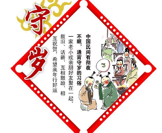 守岁,就是在旧年的最后一天夜里不睡觉,熬夜迎接新一年的到来的习俗,也叫除夕守岁,俗名“熬年”。探究这个习俗的来历,在民间流传着一个有趣的故事:
