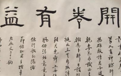 【释义】开卷:打开书本,指读书;益:好处,收获。打开书本阅读,总有益处。勉励人们勤奋好学,多读书。
