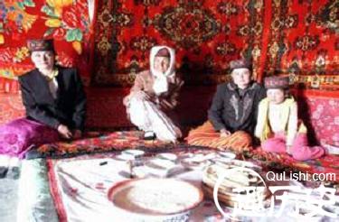 按传统习惯,一日三餐的饮食安排、各种食品的制作,均由家庭主妇承担,一般男人不需插手。进餐时,在地毯上铺饭单(布餐巾),就餐者围其四周,长辈坐在上座,菜饭按座次先后递送。