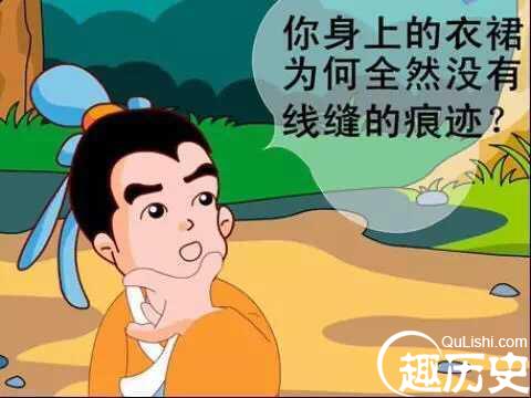 仙女让郭翰看看衣服。郭翰仔细看完,奇怪的是仙女的衣服没缝。