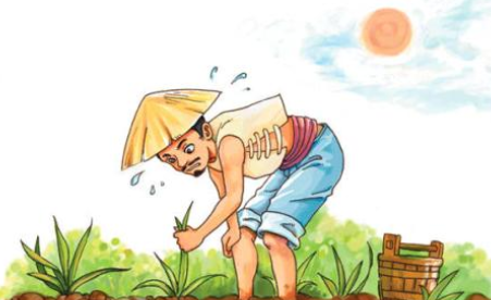 他回到家里,十分疲劳,气喘吁吁地说:今天可把我累坏了,力气总算没白费,我帮禾苗都长高了一大截。