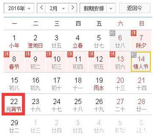 导语: 2016年2月22日为元宵节,元宵节可以说是春节的最后一天,元宵节也是和除夕一样备受重视的传统节日,元宵节意义是农历新年的第一个月圆之夜。农历正月十五元宵节,又称为“上元节”(lantern festival)、上元佳节、小正月、元夕或灯节,是春节之后的第一个重要节日,是国内及海外华侨同胞颇为重视的节日,元宵节的习俗活动非常丰富有赏灯、猜灯谜、耍龙灯等等,那么不少人关心的是2016元宵节放假吗?