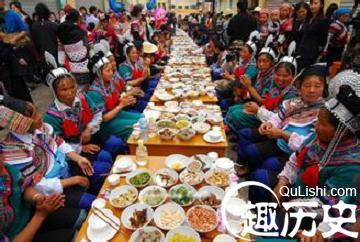 民间的婚、丧宴席风俗,一般都是在自己家中操办,而且按来客人数多少摆酒席,少则摆几桌,多则几十桌。而云南省元阳县俄扎乡哈播村哈尼族的宴席却与众不同。他们将宴席摆在大街上,一桌连一桌长达600多米,号称世界最长的乡村宴席。