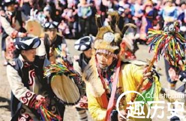 农历六月初六,是羌民族一年一度的祭山会。羌民以祭山还愿来表示对上天的崇高敬仰,也是祈盼天神木比塔恩赐百姓来年牛羊兴旺、五谷丰收。所以祭山会成为这个民族的传统节日。届时,巫师释比穿戴非常讲究,要戴猴头帽,戴念珠、手执神杖,主要的法器是羊皮鼓。祭山会的祭品,一般为宰杀后的羊、狗和鸡。三年一轮的“大祭”,要以宰杀神牛(牦牛)为祭。祭山会围绕天神塔进行祭祀活动,天神塔高约3-4米,状如锥形,顶端有一块较大的白石,周围放数块小白石,以象征其民族信仰的各个神位。