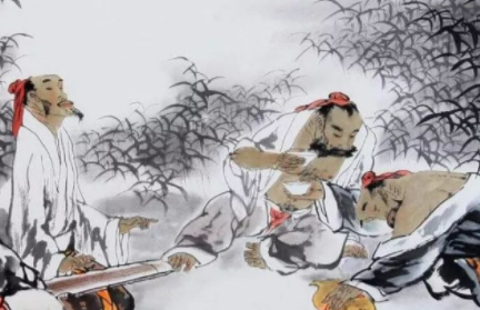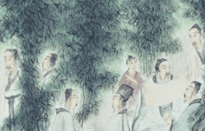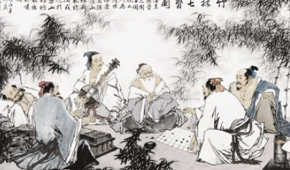 “竹林七贤”继“建安七子”之后,指西晋时期七位名士:阮籍、嵇康、山涛、刘伶、阮咸、向秀和王戎。其中的阮籍为阮瑀之子。他们在生活上不拘礼法,崇尚玄学,主张老庄的顺其自然、无为而治,常聚众在竹林喝酒纵歌、写诗作赋,揭露和讽刺司马朝廷的虚伪,被后人称为“竹林七贤”。