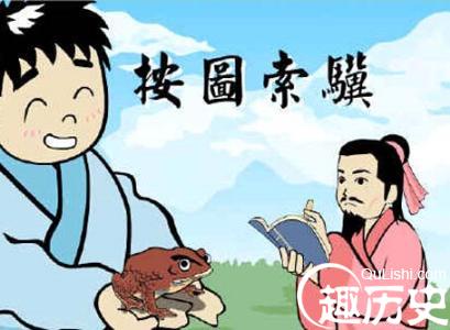 这个成语来源于《艺林伐山》,伯乐《相马经》有“隆颡(sang)蚨日,蹄如累曲”之语,其子执《马经》以求马。出见大蟾蜍,谓其父:“得一马,略与相同,但蹄不如累曲尔。”