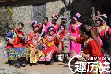 鞭炮声中,接亲、送亲的队伍陪新娘离开山寨。途中每到一寨,炮手们总是放三炮,路过亲戚们的家门时,家家摆出玉米、麦子、黄豆粘成的糖块为客人接风、倒茶。