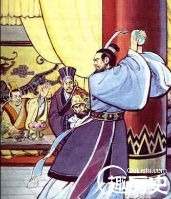 蔺相如拿着“和氏璧”往后退了几步,身体靠在柱子上,气冲冲地对秦王说:“当初大王差人送信给赵王,说情愿拿十五座城来换赵国的'和氏璧'。赵国大臣都说,千万别相信秦国骗人的话,我可不这么想,我说老百姓还讲信义呐,何况秦国的大王哩!赵王听了我的劝告,这才派我把"和氏璧"送来。没想到方才大王把宝玉接了过去,随便交给下面的人传看,却不提起换十五座城的事情来。这样看来,大王确实没有用城换璧的诚心。现在宝玉在我的手里,如果大王硬要逼迫我,我情愿把自己的脑袋和这块宝玉一块儿撞碎在这根柱子上!”说着,蔺相如举起“和氏璧”,面对柱子,就要摔过去。
