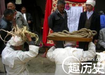 另外,汉族还有“归葬”的习俗,就是将死于他乡的遗体归葬原籍。丧事期间,死者亲属要穿孝服,在灵堂守灵。中国古代礼制,把孝服按与死者血缘关系的亲疏分为五等,在现代汉语里还有“五服”这个词,表示血缘关系的远近。孝服用白布做成,这与西方民族穿白衣做礼服的习俗大不相同。