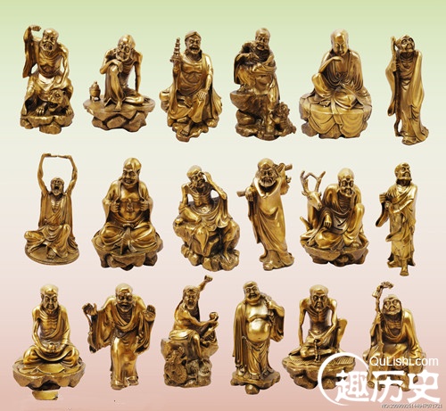 十八罗汉简介:十八罗汉是指佛教传说中十八位永住世间、护持正法的阿罗汉,由十六罗汉加二尊者而来。他们都是历史人物,均为释迦牟尼的弟子。十六罗汉主要流行于唐代,至唐末,开始出现十八罗汉,到宋代时,则盛行十八罗汉了。十八罗汉的出现;可能与中国文化中对十八的传统偏好有关。