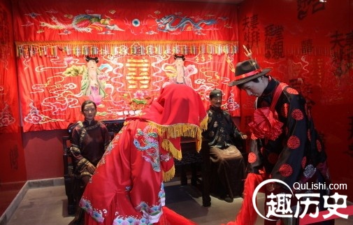 拜堂是从唐朝开始的,当时新娘拜见公婆,也就是拜堂。到了北宋时期,新郎新娘要先拜家庙,行合卺礼,第二天一大早,新娘把镜子摆在桌子上,进行下拜,称之为拜堂。到了南宋时,拜堂才改为结婚当天,新郎掀开新娘的盖头开始拜堂。南宋拜堂的风俗就一直被延续下去,在结婚当天拜天地后再拜堂。