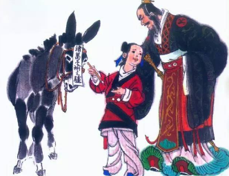 吴王孙权,还沉浸在恶搞之后的兴奋之后, 饶有兴趣, 且意有未尽。突然看到诸葛家小子恪跑出来, 在驴面纸条上划了两下,这小子想干什么? 吴王有点不悦,细细一看, 原来驴面纸条上“诸葛子俞”四个字, 被恪改成了六个字“诸葛子俞之驴”,吴王及众大臣不由得拍案叫绝,诸葛恪这小子太聪明了!吴王当即龙心大悦, 把这头驴赐给诸葛恪。