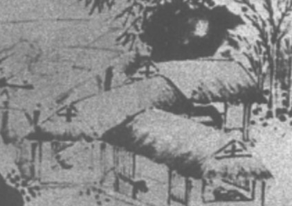 该图画的是自己的住宅,画中心部位,画有几间茅屋草亭,柴门敞开,陈设简陋,屋内空五一人,显得十分幽静寂寞,屋后有假山一座,形状奇特,踞于画幅右侧中部,山石前后有疏竹、芭蕉、葡萄架相掩,院中池水曲栏,意境甚为清寂萧索。