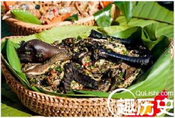 在砍竹中,取出肥嫩的竹蛹剁碎,拌上米粉、佐料,倒点木瓜醋,既可凉拌生吃,也可将竹蛹烘烤后用油炸,吃起来又脆又香。吃竹蛹能明目健脾。这是在葬礼过程中的顺便一道菜。