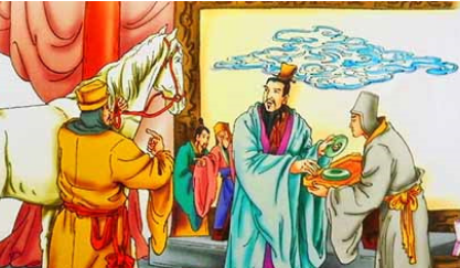 晋献公采纳了荀息的计策,把礼物送去给虞国,然后向虞国借路。虞国国君得了玉石和骏马,立刻答应了晋国的要求。