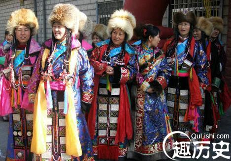藏族广布西藏、四川、青海、甘肃、云南等地,服饰多姿多彩、男装雄健豪放;女装典雅潇洒,尤以珠宝金玉做为佩饰,形成高原妇女特有的风格。
