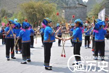 打扁担主要反映壮族人民从种到收的主要劳动过程。