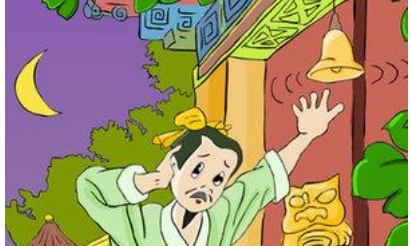一天晚上,他借着月光,蹑手蹑脚地来到邻居家门前。他伸手摘铃铛,但是,铃铛挂得太高了,怎么也够不着,他只好扫兴地回去了。