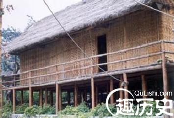 楼板用木板或竹蔑席制成,铺设在架在斜坡地上的许多木桩上。这些木桩和房柱,象千百只脚一样,支撑着整个房屋。因此,人们称之为“千脚落地的房子”。