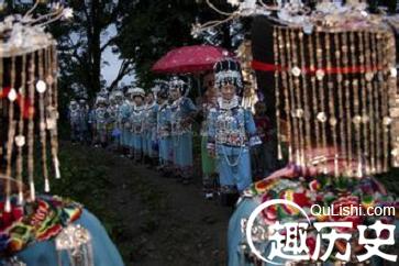 于是,年轻猎人就给母女俩修了一栋—正两厢房的瓦屋。覃母见年轻猎人勤劳厚道,就把女儿许配给他了。女儿出阁那天,母亲心里还是不踏实,就对“高亲”说:“你们把姑娘送去,要陪她三天三夜,如果苗家人真的粗野,就把姑娘给我带回来。”于是,“高亲”硬是陪姑娘吃住三天三夜,见苗家人确实勤劳忠厚,才启程回家。以后,凡苗家人结婚,都是遵循新婚三晚不同宿的习俗。