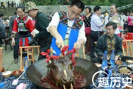在史料中,也能寻找到关于“牛头宴”的吉光片羽,民国《永顺县志》卷24记载:“宣慰签天祭以白牛,牛首置几上,银付之。下令曰:有敢死冲锋者,收此银,吃此牛首。勇者报名,汇而收之,更盟誓而食之。”
