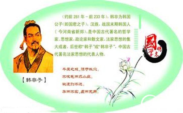 韩非子出生于战国末时期,他是当时势力最弱的韩国的贵族,从小口吃,但是天资却非常的聪慧,虽然不善于语言表达,但是他的著作可谓是一个大手笔,非常的有才华,再加上他的见解也十分的深刻;他目睹着自己的国家一步步走入灭亡,于是向韩王说了自己关于治国的意见,但是韩王并没有采纳他的意见,韩非子非常的失望,不过却斌没有放弃,经过自己的思考与探索总结之后,终于找到了如何是国家由弱变强的方法,随后著作了《韩非子》,韩非子主张“法治”并且也是法家代表人,后来秦始皇采纳了韩非子的意见,终于统一了中国,由此可见韩非子对中国历史意义的重大。