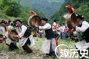 跳盔甲:羌族信仰习俗。又叫大葬舞。在为有功将士举行葬礼时跳。参加者一般为几人到十几人,头戴皮铠甲,手持兵器,先围成圈跳,接着形成两排对阵,兵器飞舞,铜钤叮当,吼声震天,表现死者作战时的威武气概。