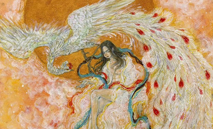 这中间十句的前六句,写的是停云状态,因为只有停云才能返照出日月的晕彩,这正是云中君的神性所在。其中“烂昭昭兮未央”一句以后,隔了一句,又配上“与日月兮齐光”一句遥相呼应。这“烂昭昭”和“与日月”是写其光彩,这“未央”与“齐光”,则着重写其永恒,让人自去联想这是在寿宫里对神的永恒的礼赞。但又暗示着人们内心里对长寿的祝祈,两者掩映得非常巧妙。