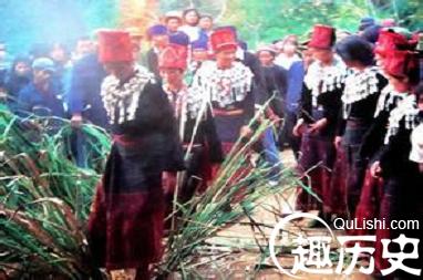 敬酒迎新娘:不论是以各种形式娶来的新娘,到了男方村寨后都不能直接进入男方家,而是先在媒人家落脚,住上一夜。据说,这样是为了避免姑娘身上带来的鬼魂带到男方家。举行婚礼前,有媒人指定两名敬酒人,向新娘敬四次酒,敬完一次返回新郎家。第一次表示欢迎新娘的到来;第二次请新娘好好休息;第三次请吃好饭,第四次表示一切准备齐全,请新娘到新郎家。敬酒完毕,就为新娘梳妆打扮,之后由女方媒人执矛带路,两名伴娘相随新娘左右,在众人的簇拥下来到新郎家。这时,新郎则带领一伙男女青年吹笛唱歌迎接新娘的到来。之后,这对新人来到早已准备好的婚礼仪式场地,由男方媒人宣布婚礼开始,首先让新郎新娘互敬烟酒,之后双方为在场的所有人敬烟、敬酒。