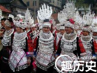 此外,苗族人在不同的节日还会穿着相应的服装,佩戴特殊的银头饰,这时的银头饰不仅仅代表着人们的审美观,它还是一个民族文化、习俗的要求和精神寄托,如银帽、银冠、插有银扇的银角都是苗族女性重要的头饰,是苗族姑娘在出嫁和节日盛装打扮时才使用。